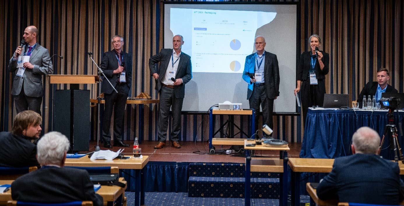 Nachdem Rolf Luther im letzten Jahr zum Vorsitzenden der GfT gewählt worden war, begrüßte er die Teilnehmer zum ersten Mal in dieser Funktion. Nach seinen Eröffnungsworten wurden im ersten Plenarvortrag unter der Leitung von Mirjam Bäse, GfT-Arbeitskreis Öffentlichkeitsarbeit, die Ergebnisse der letztjährigen Meinungsumfrage aufgegriffen und unter dem Titel „Gesellschaft für Tribologie e.V., Ziele – Struktur – Vorteile – Meinungen“ die Aufgaben und Arbeitsweise der Gremien und Arbeitskreise dargestellt. In einem abschließenden Interview warfen die Vorsitzenden von Vorstand und Beirat und der Geschäftsführer noch einen persönlichen Blick auf Gegenwart und Zukunft der GfT.