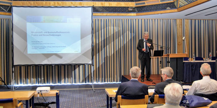 Seit ihrer Gründung als „Gesellschaft für Schmiertechnik“ ist die GfT fachlich eng mit der Automobiltechnik verbunden und muss sich deshalb den abzeichnenden Veränderungen in diesem Industriezweig stellen. So widmete sich gleich der erste Vortrag den Chancen und Herausforderungen von Wasserstoff und Brennstoffzellenantrieb. Gehalten wurde dieser von Reinhold Wurster, Senior Consultant bei Ludwig-Bölkow-Systemtechnik (LBST), einer Beratungsfirma, die seit vielen Jahren auf dem Gebiet der nachhaltigen Energieversorgung und insbesondere der Wasserstofftechnologie tätig ist. Er legte in sehr überzeugender Weise dar, dass der Brennstoffzellenantrieb eine realistische, möglicherweise die einzige Möglichkeit ist, den Verkehrssektor langfristig mit regenerativer Energie zu versorgen.