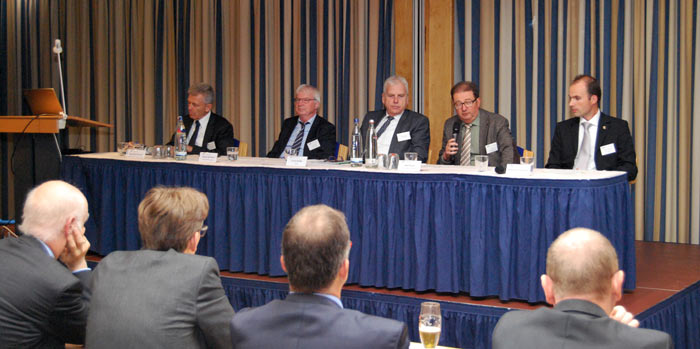 Die traditionelle Podiumsdiskussion „Tribotalk“ am Montagabend drehte sich dann wieder um alternative Antriebskonzepte im Straßenverkehr und stellte die Frage nach der Zukunft von Benzin- und Dieselmotoren. Mit Prof. Horst Harndorf (FVTR GmbH; Rostock), Dr. Axel Kunz (John Deere GmbH), Frank Radke (UNITI), Dr. Manuel C. Schaloske (e-mobil BW GmbH) und Reinhold Wurster (LBST) war das Podium prominent besetzt. Dementsprechend blieb die Diskussion nicht nur an der Oberfläche, sondern es konnten auch Teilaspekte beleuchtet werden wie z.B. dass der Dieselmotor z.B. in der Landwirtschaft derzeit ohne Alternative ist und dass durch Abgasnachbehandlung für Schiffe und LKWs deutlich mehr erreicht werden kann als bei PKWs. Am Schluss wurde deutlich, dass für einen Umstieg auf alternative Kraftstoffe bzw. Antriebe möglich und von keinem der Diskussionsteilnehmer in Frage gestellt wurde. Ebenso deutlich wurde jedoch, dass dafür klare Vorgaben von Seiten der Politik erforderlich sind.