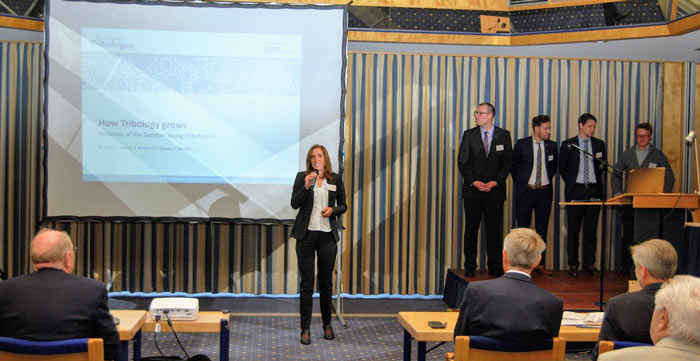 Beendet wurde die Plenarveranstaltung am Montagnachmittag durch einen Beitrag der jungen Tribologen die in einzelnen Kurzvorträgen über ihre Aktivitäten zeigten, dass Engagement in einem Fachverband wie der GfT auch mit viel Freude einhergehen kann.