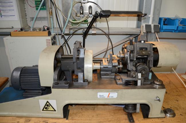 | Verwendungszweck | Der Zwei-Scheiben-Prüfstand "A135" der Firma Roell-Amsler kann zur Untersuchung der Bewegungsarten Rollen, Gleiten und Wälzen eingesetzt werden. |