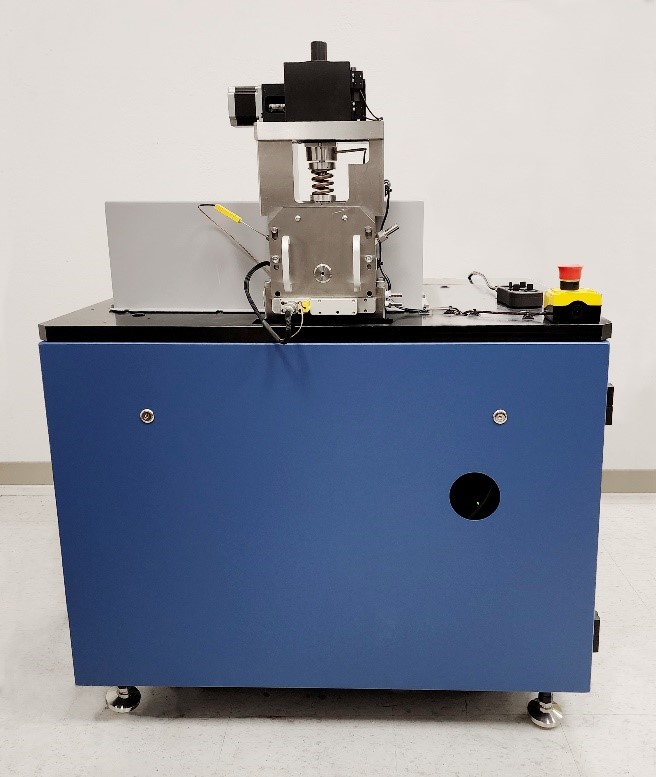 | Kurzbeschreibung des Prüfstandes | Das MPT ist ein computergesteuertes drei Scheiben-auf-Rolle-Kontakt¬gerät, bei dem eine zentrale Rolle (Probe) mit drei Gegenflächenringen in Kontakt steht. Die drei Scheiben vervielfachen so die Zyklenzahl auf der inneren Rolle und es entsteht eine Zeitraffung bei trotzdem hohen Zyklenzahlen auf der inneren Rolle. Die Ermüdung tritt folglich vorzugsweise auf der inneren Rolle auf. Das softwarege¬steuerte Gerät erfasst mit hoher Zeitauflösung die Beanspruchungs¬parameter und die tribologischen Messdaten. In der Grundausführung können Prüfungen von -35°C bis +150°C ausgeführt werden. Normalkraft= 5.000 N oder 8.000 N. Als 220V- oder 480V-Ausführung. |